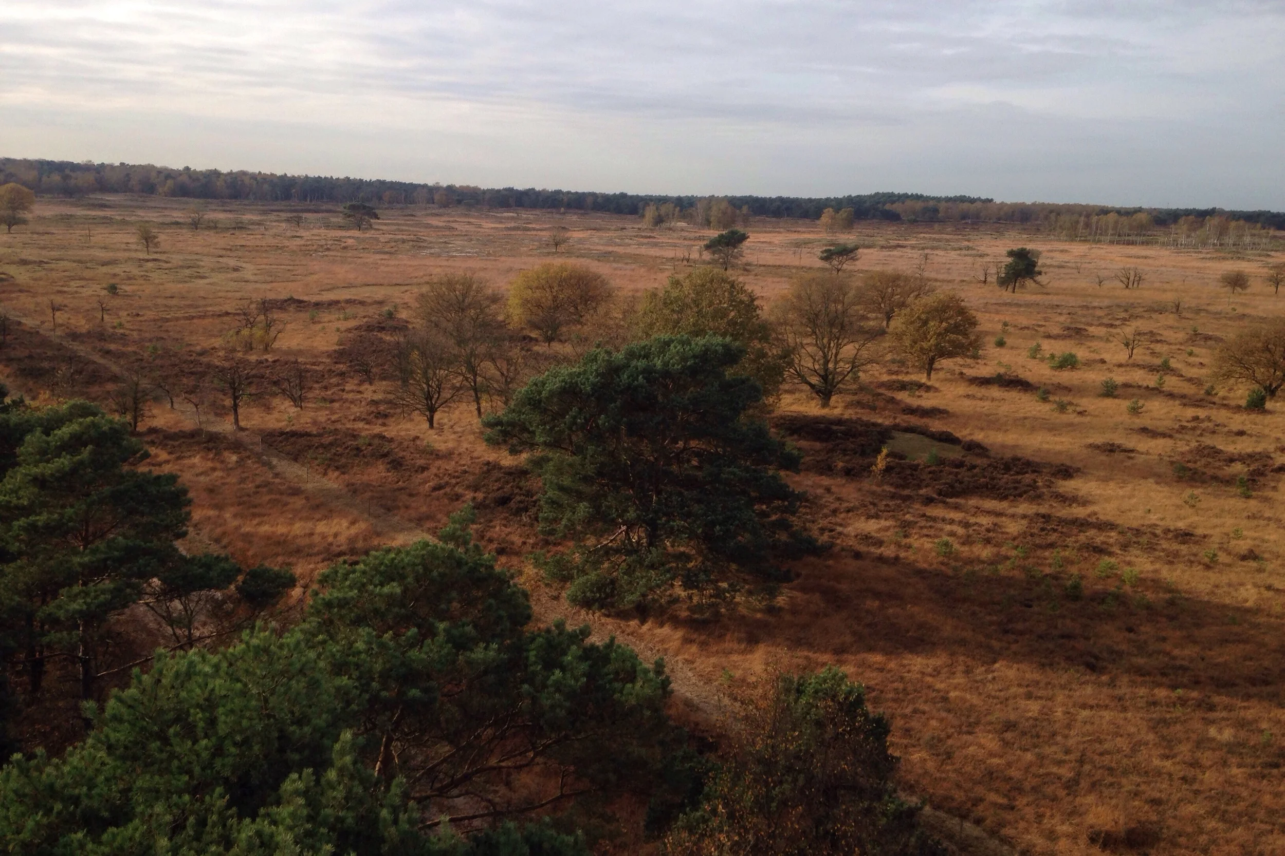 Op een aantal plekken in het Grenspark staan uitkijktorens die je kunt beklimmen op eigen risico. Op het moment dat wij er één beklimmen hebben we de toren helemaal voor onszelf. Met een warm briesje in ons haar en zonnestralen op ons gezicht kijken we onze ogen uit: vanaf hier lijkt de heide wel een Afrikaanse steppe. Hier en daar groene bomen, maar voor de rest is het vooral droog veen. Het enige wat mist zijn een paar giraffes of een brullende leeuw, zodat het uitzicht helemaal compleet is. Even knijpen, want dit is toch echt 'gewoon' België en Nederland.