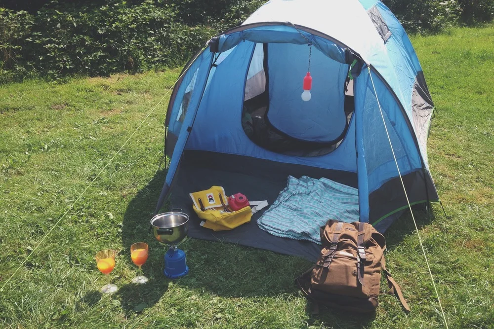 De overnachting bij de Voscheheugte is de eerste officiële overnachting van Kram op een echte camping. Het is ook de eerste keer dat we de nieuwe gasbrander, de onbreekbare (!) wijnglazen en het schattige tentlampje van de Hema gaan testen. Natuurlijk waren de eerste overnachtingen bij onder andere de VPRO en Urban Campsite heel erg te gek, maar dit voelt eigenlijk ook wel goed. Lekker kneuterig, maar we worden ontzettend blij van ons blauwe paleisje met dito accessoires! Als de tent staat en de matjes zijn uitgerold kunnen we het dan ook niet laten om even goed te proosten met onze onbreekbare wijnglazen (wat een uitvinding is dat zeg).