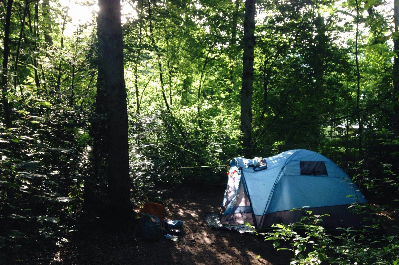 Last minute kamperen, iets wat we iedereen kunnen aanraden. Vorige maand hadden we wat tijd over en plotseling een enorme drang naar natuur, stilte en slapen in een tentje dus vroegen we of Anoek van De Groene Koepel, met wie we samenwerken, nog een leuk plekje voor ons wist om op zondagavond een nachtje te kunnen verblijven met onze tent. Ze reageerde net zo enthousiast als wij en stelde ons voor om naar Natuurkampeerterrein Schoonenberg in Velsen-Zuid te gaan. Wat boffen wij met zo'n fantastische tipgever want voordat we het wisten hadden we ons tentje uitgegooid in een van de vele verborgen plekken in het bos op het terrein.