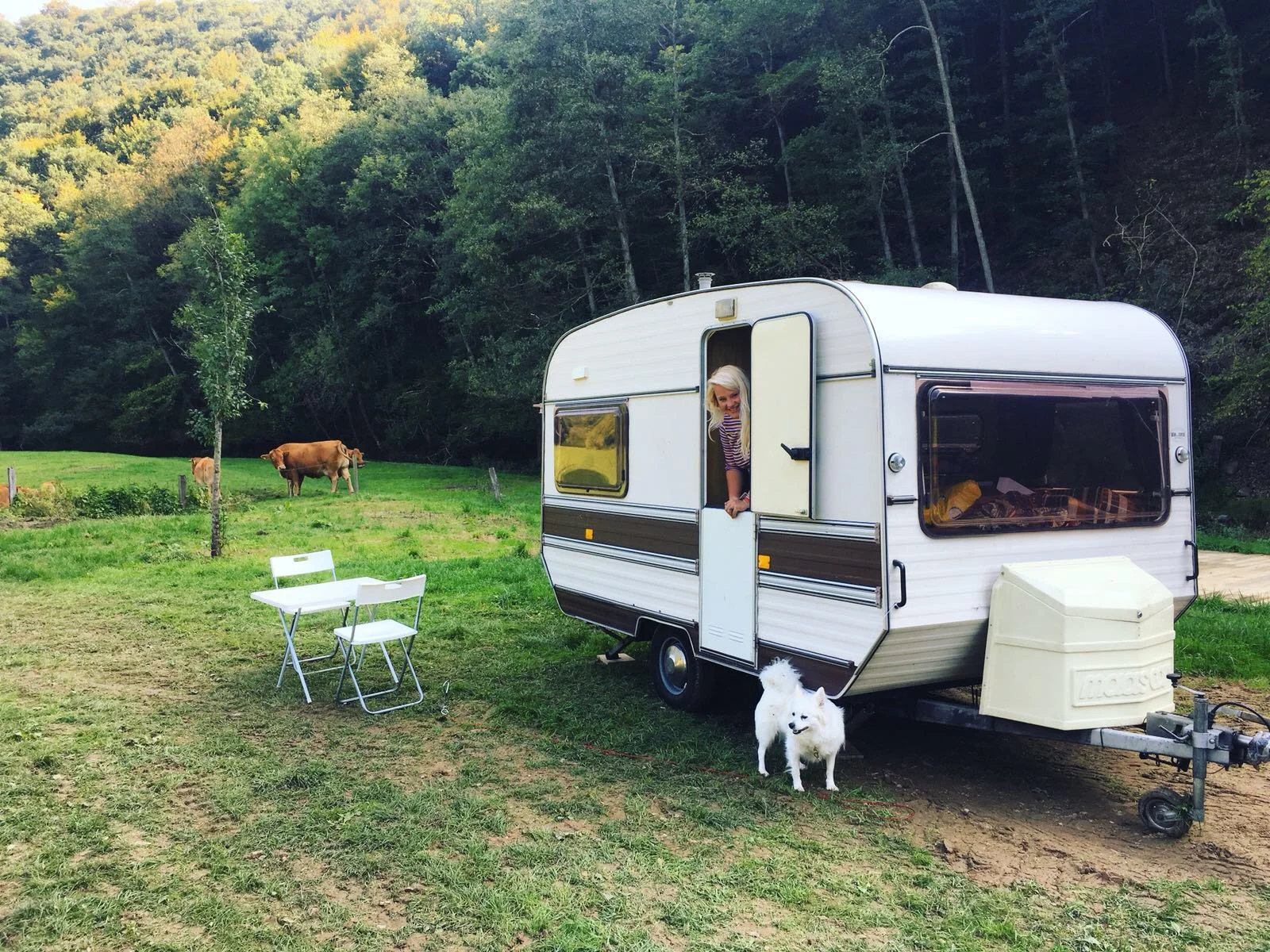 De weg naar de eerste camping in de Eifel is ontzettend steil en smal, helemaal wanneer je met een aanhangwagen of caravan de heuvel af moet. Terwijl we voorzichtig dalen via de haarspeldbochten kijken we onze ogen al uit over het dal. Daar ergens beneden ligt als het goed is de camping en verder niets. Dat wordt direct bevestigd wanneer we het terrein oprijden en een groot groen veld zien met een tipi-tent, twee jacuzzi's, een paar caravans, een paar cabins en vooral heel veel natuur. Nadat we even babbelen met de vriendelijke Nederlandse eigenaar kiezen we ons eigen plekje uit: aan het water en naast de koeien die in het weiland naast de camping staan. Wát een plek en dat op zo'n korte afstand rijden vanaf Nederland!
