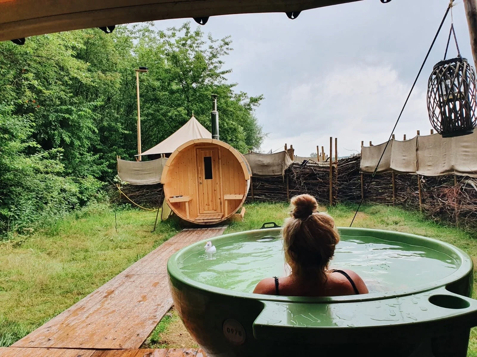 Boek bijvoorbeeld het Wellnestje voor een dagdeel, een afgeschermd stuk groen met een hot tub, een sauna en een overdekt stukje met ligstoelen om te relaxen. Je stookt de hot tub en de sauna zelf met houtblokken die je bij je verblijf krijgt. Ook ontvang je een lekkere borrelplank, hamamdoeken, flesjes water en een fles prosecco of biologisch sap.