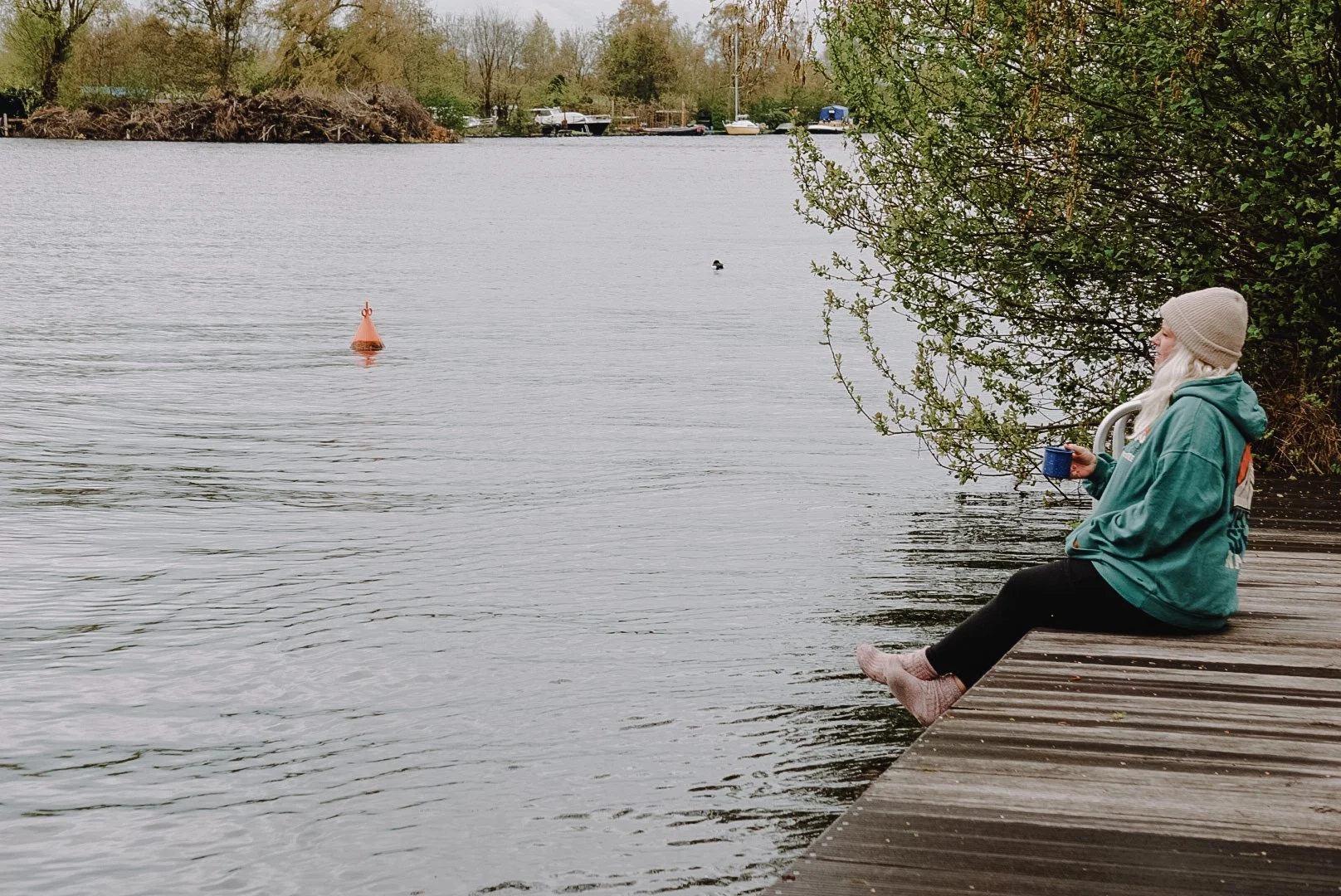 Zo aan het einde van april zou je toch verwachten dat het al iets warmer zou zijn in Nederland. Als we wakker worden moeten we toch echt de houtkachel aansteken om het een beetje behaaglijk te hebben. Dat het zo koud kan zijn op de Vinkeveense Plassen in deze periode van het jaar had ik niet verwacht, maar eerlijk? Ik vind die herfstvibes in de Eilandhut van Vrijhaven Zwier eigenlijk nog hartstikke fijn. Wakker worden met een vuurtje, een kop koffie en het getik van regen op het dak van de hut is de ideale combinatie om even te vertragen.